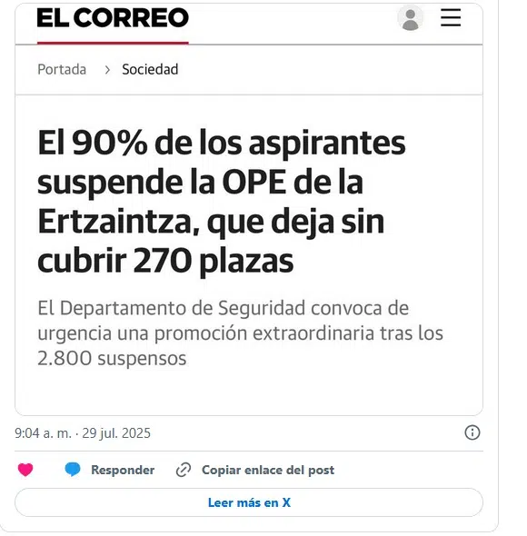 Por primera vez, las oposiciones a la Ertzaintza y a la Policía Local Vasca no solo han sido tendencia en los foros de aspirantes y en la prensa, sino que se han hecho virales en redes sociales, generando miles de comentarios y memes sobre la dificultad inesperada de las pruebas y los resultados sorprendentes.